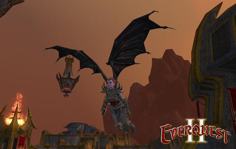 Have you ever wanted to fly? Guess what? Now you can! Nightmare Flight Wings and Pegasus Feather Flight Wings will allow your character to fly just like a flying mount! These wings offer a ground speed increase of 75% and an air speed increase of 150%. They also increase Piercing, Slashing, Focus, Ordination, Subjugation, Disruption, Ministration, Ranged, Aggression and Crushing of the caster by 5.0. The wings can be used by an adventurer or tradeskiller of level 85 or higher. They can also be used as an appearance mount for players of lower level. The wings remain visible during combat but they will vanish when a character wearing them enters a dungeon (or other zone where mounts are not allowed), goes underwater or climbs a wall. If you have "hide mount" selected in your mount options, the wings will disappear during combat. If a Fae or Arasai dons these items, they will replace their natural wings. Additionally, Fae or Arasai will no longer hover while wearing these wings. Instead, they will walk/run on the ground like the other races do. Get them both in the Marketplace now for 1,950 Station Cash each! Spike-Crested Battlehelm