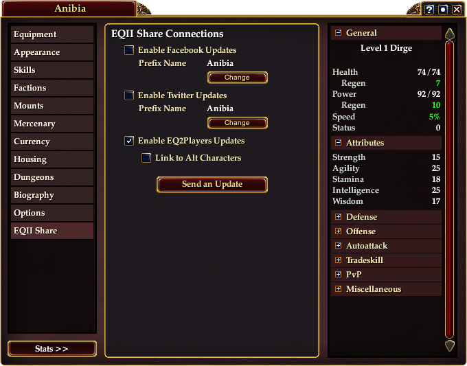 - Enable EQ2 Players Updates - Make this character publicly viewable on EQ2 Players.